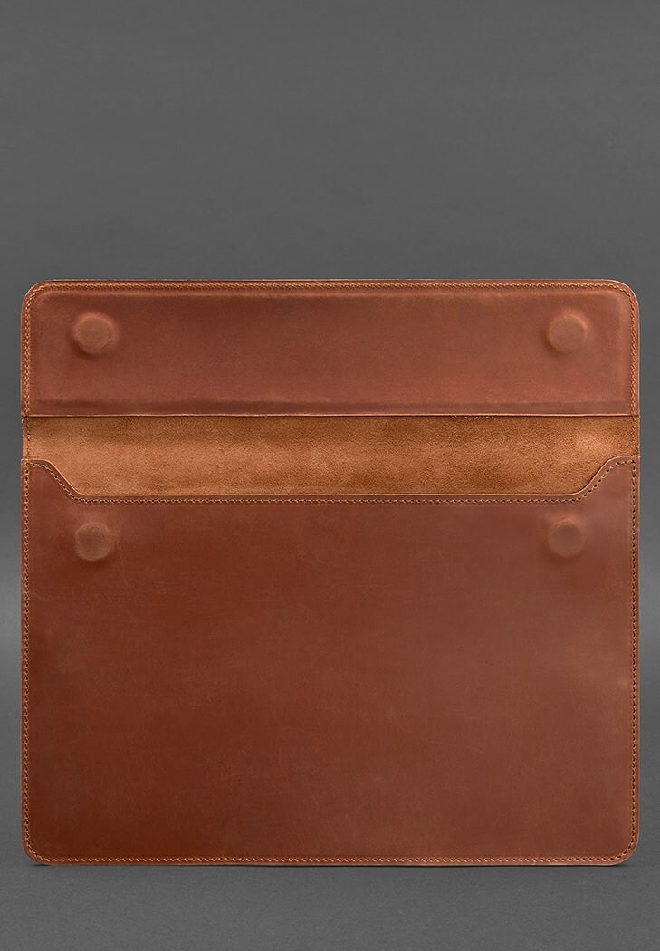 Виконано чохол повністю з міцної натуральної шкіри з красивою винтажной поверхнею. Всі шви прошиті вручну спеціальною ниткою. Чохол закриваеться клапаном, який надійно фіксує ноутбук всередині аксесуара.
