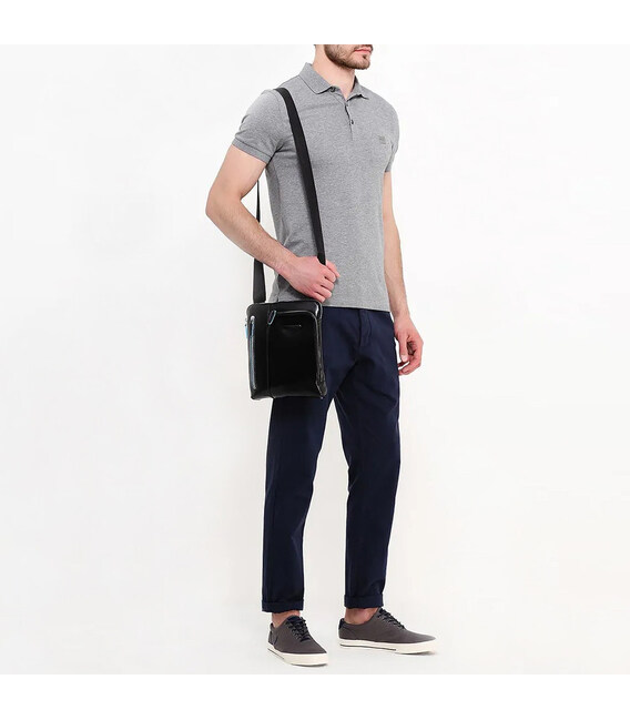 Чоловічасумка Piquadro BL SQUARE/Black CA1816B2_N – один з найактуальніших та найпопулярніших аксесуарів у світі повсякденної моди представників сильної статі.З компактною та місткою Піквадро SQUARE/Black можна сміливо вирушати в офіс, або на прогулянку – у цьому неймовірно зручному аксесуарі знайдеться місце для всіх дрібниць, без яких сучасна людина не звикла пересуватися.Зручний функціонал сумки забезпечують такі елементи її конструкції:• Дві кишені на фронтальній поверхні виробу (врізна та накладна);• Містке внутрішнє відділення, розділене всередині на дві секції;• Наявність надійного фіксатора для iPad (в основному відділенні);• Задня кишеня на блискавці;• Міцно вшитий наплічнийремінь, з можливістю регуляції довжини.Окрему, значиму роль в представленій моделі Піквадро грає матеріал виготовлення – натуральна шкіра італійського виробництва. Це м'який, еластичний та дуже міцний матеріал, що забезпечує високу зносостійкість аксесуара, а також тривале збереження його цілісності, функціональних можливостей та початкової естетики.Piquadro BL SQUARE/Black CA1816B2_N доповнено якісною металевою фурнітурою сріблястого відтінку. Холодний тон металу чудово гармонує з блакитними вставками-окантовками, які скромно і лаконічно виділяють найбільш функціональні ділянки поверхні сумки (кишені, блискавки-замки і т.д.). Такий аксесуар прикрасить ваш повсякденний образ елегантним лоском і статусністю.