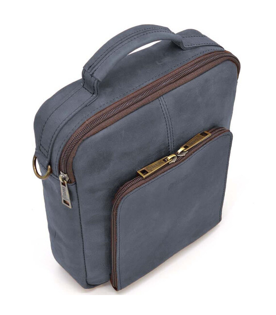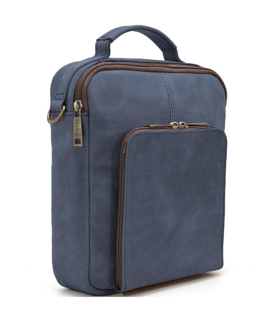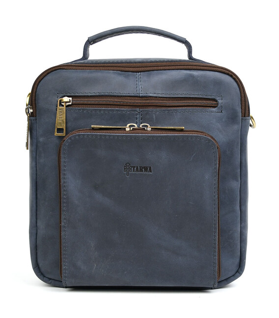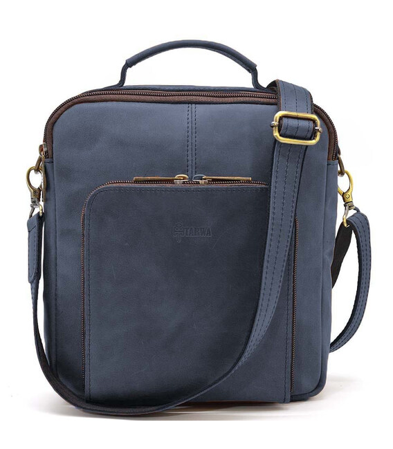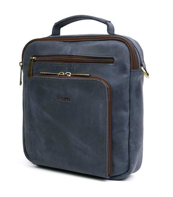 Чоловіча сумка з ручкою кінська шкіра RK-6016-3md TARWA. Одне основне відділення плюс передня кишеня накладна, шкіряна комфортна ручка, шкіряний ремінь, що знімається через плече.