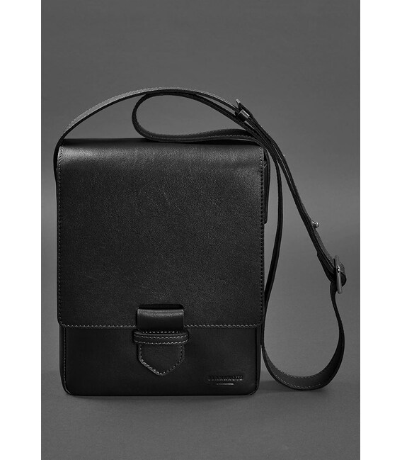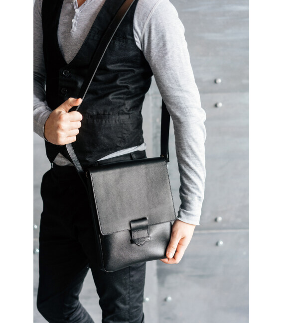 Сумка-месенджер представлена в двох по-чоловічому стриманих і крутих кольорах - чорному і коньячному.