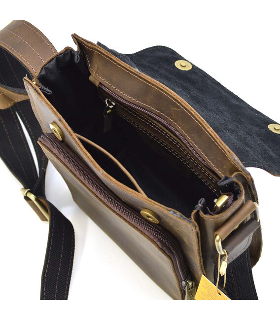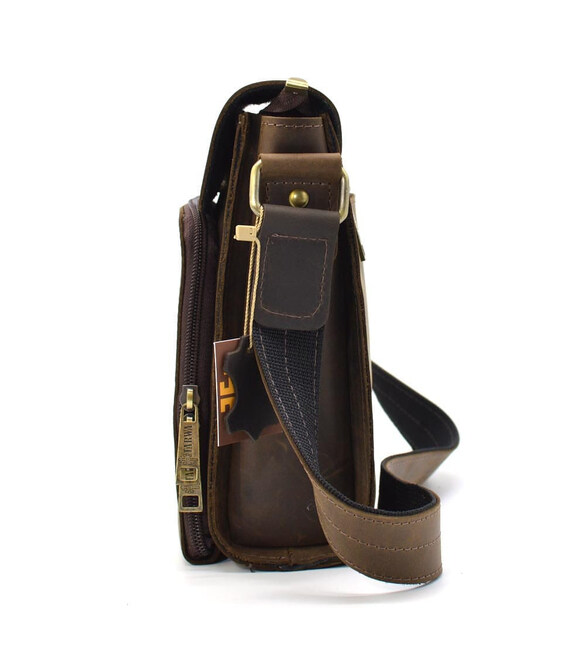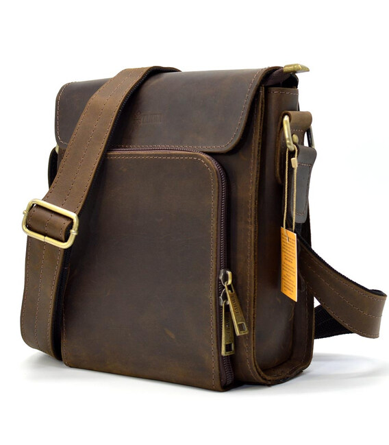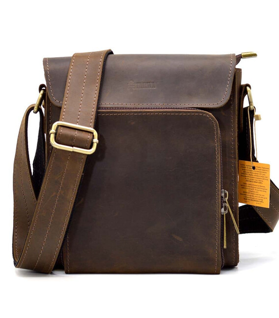 Зручна чоловіча сумка через плече, з маленьким клапаном RC-30272-3md бренду TARWA, з натуральної матової шкіри коричневого кольору, вироблення crazy horse.