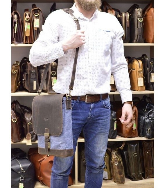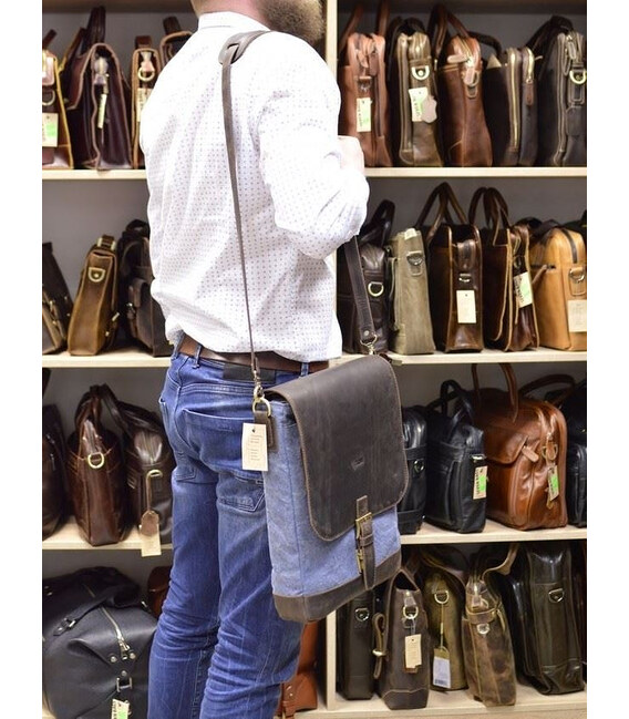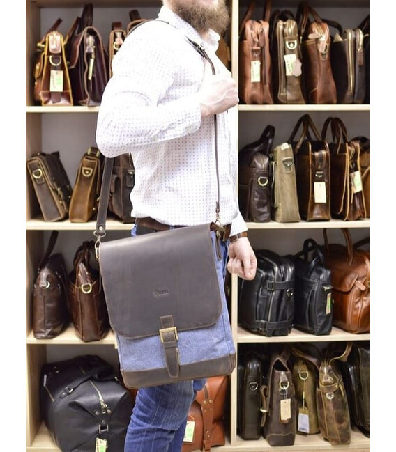 Вертикальна чоловіча сумка парусина і шкіра RK-1808-4lx TARWA