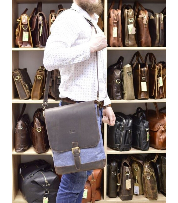 Вертикальна чоловіча сумка мікс парусина + шкіра RK-1808-4lx TARWA. Стильний дизайн, зручна форма, вміщує документи формату А4. Поєднання шкіри і парусинового матеріалу "кинувся" дуже популярний, практичний і чудово виглядає зі всілякими образами.