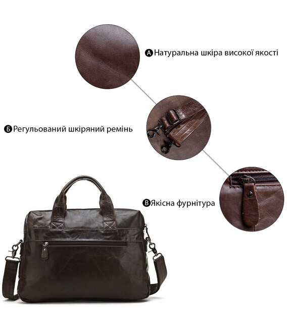 Ексклюзивна шкіряна сумка для ноутбука або документів формату А4. Завдяки своїй високій якості і прийнятній ціні, аксесуар заслужив довіру на українському ринку. Така сумка буде довго і вірно служити своєму власникові.