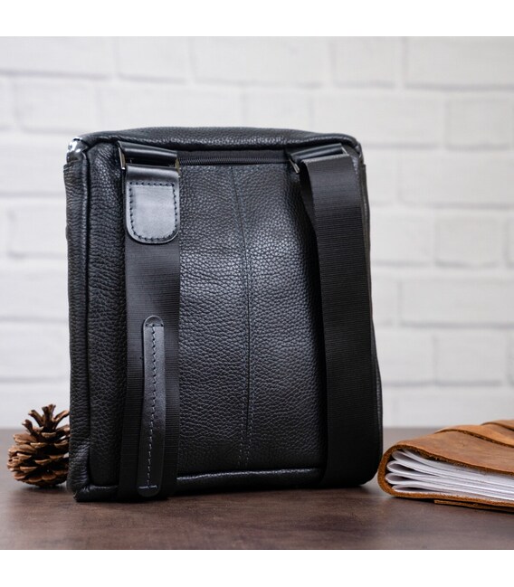 Стильна, сучасна, чоловіча сумка, з натуральної зернистої шкіри. Розмір дуже зручний. Особливість дизайну дозволить чоловікові носити з собою особисті речі, документи, багато потрібних дрібниць.