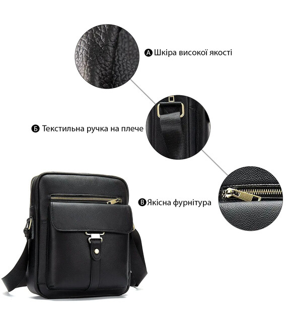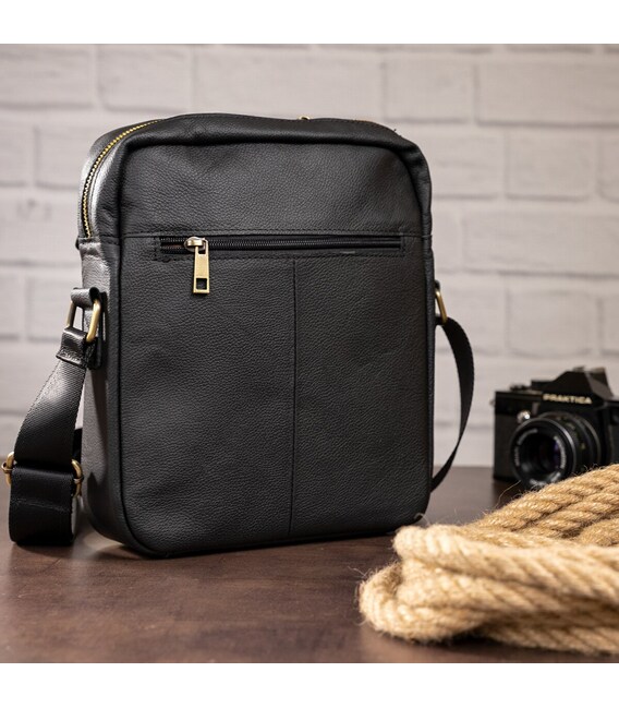 Мініатюрна сумка для чоловіків, які цінують якість і не люблять величезних сумок. Сумка оптимального розміру на кожен день. Поміститься гаманець, сигарети, документи, перекус і маленька пляшка з водою. Виготовлена з натуральної шкіри. Виробництво фабричний китай високої якості. Сумка упакована в тканинний мішок, що дуже зручно для її зберігання. Фурнітура в сумці золотистого кольору. Прошита міцними чорними нитками. Наш магазин контролює якість виробів, тому можна сміливо брати. Сумка буде хорошим і бажаним подарунком для будь-якого чоловіка.