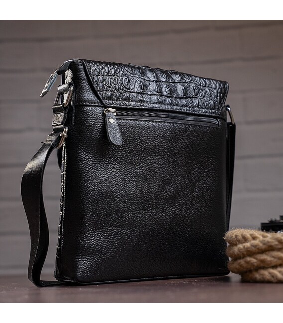 Солідна чоловіча вертикальна сумка високої якості. Аксесуар підходить на роботу і на зустрічі. Сумка зручно носиться на плечі. Аксесуар має тиснення під шкіру крокодила і носиться досить довго і не примхливий у догляді. Модель зі шкіри рептилії оцінить кожен чоловік. Буде чудовим подарунком. Сумка упакована в тканинний чохол, що захищає її від пилу і зносу.