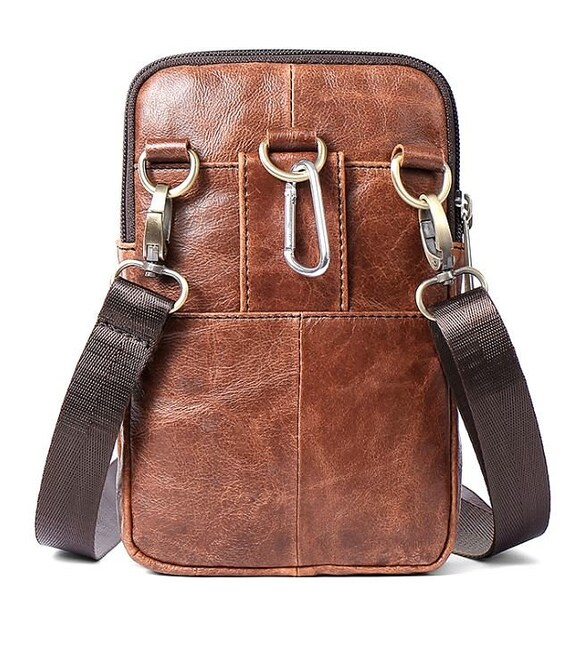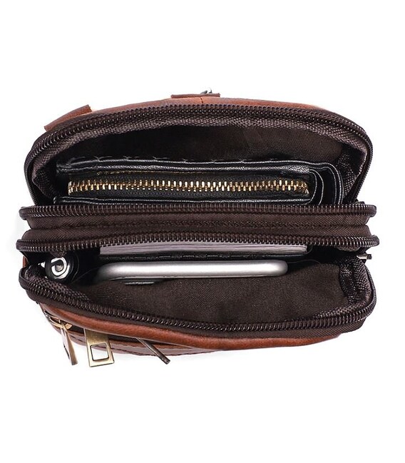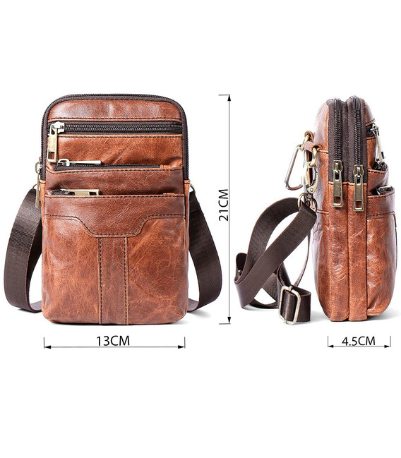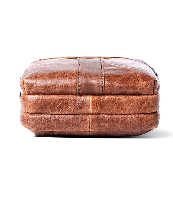 Оригінальна сумка для чоловіків невеликого розміру. Хороший варіант для тих, хто шукає маленьку сумку для найнеобхіднішого. Ви можете носити таку сумку кожен день. По краях аксесуар прошитий коричневою ниткою. Усередині сумки міцна текстильна підкладка коричневого кольору. Ви будете приємно здивовані, адже сумка довго буде носитися. Може бути прекрасним варіантом для подарунка кожному чоловіку.