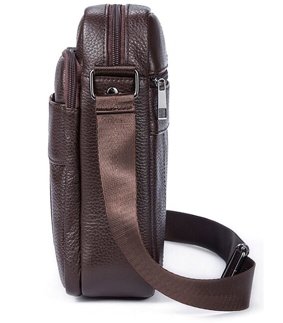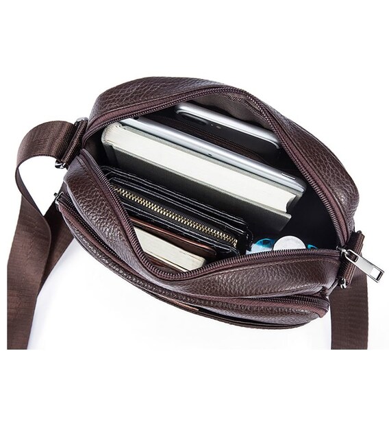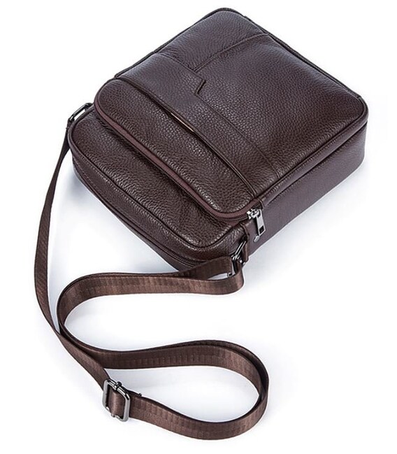 Гарна компактна сумка з натуральної шкіри високої якості. По краях аксесуар прошитий коричневою ниткою. Модель доповнена фурнітурою кольору темного металу. Оптимальний варіант для тих, хто любить маленькі компактні сумочки і вважає за краще, щоб все було під рукою. Буде ідеальним подарунком для стильного і солідного чоловіка.