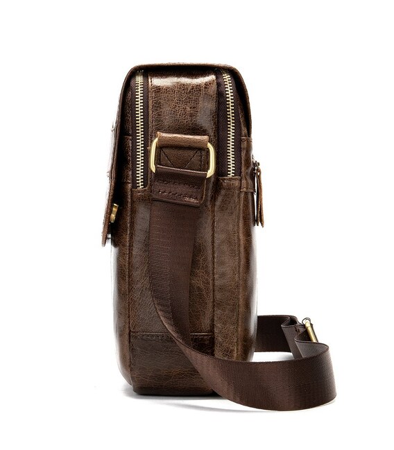 Чоловіча шкіряна сумка оптимальних розмірів на кожен день. Прекрасний варіант на роботу. Аксесуар виконаний з гладкої шкіри, яка не вибаглива в догляді і довго носиться. Модель оснащена всім необхідним функціоналом. Варто зазначити, що сумка має два відділення для вашої зручності. Аксесуар доповнено якісною фурнітурою золотистого кольору. Така сумка буде ідеальним подарунком для будь-якого чоловіка.