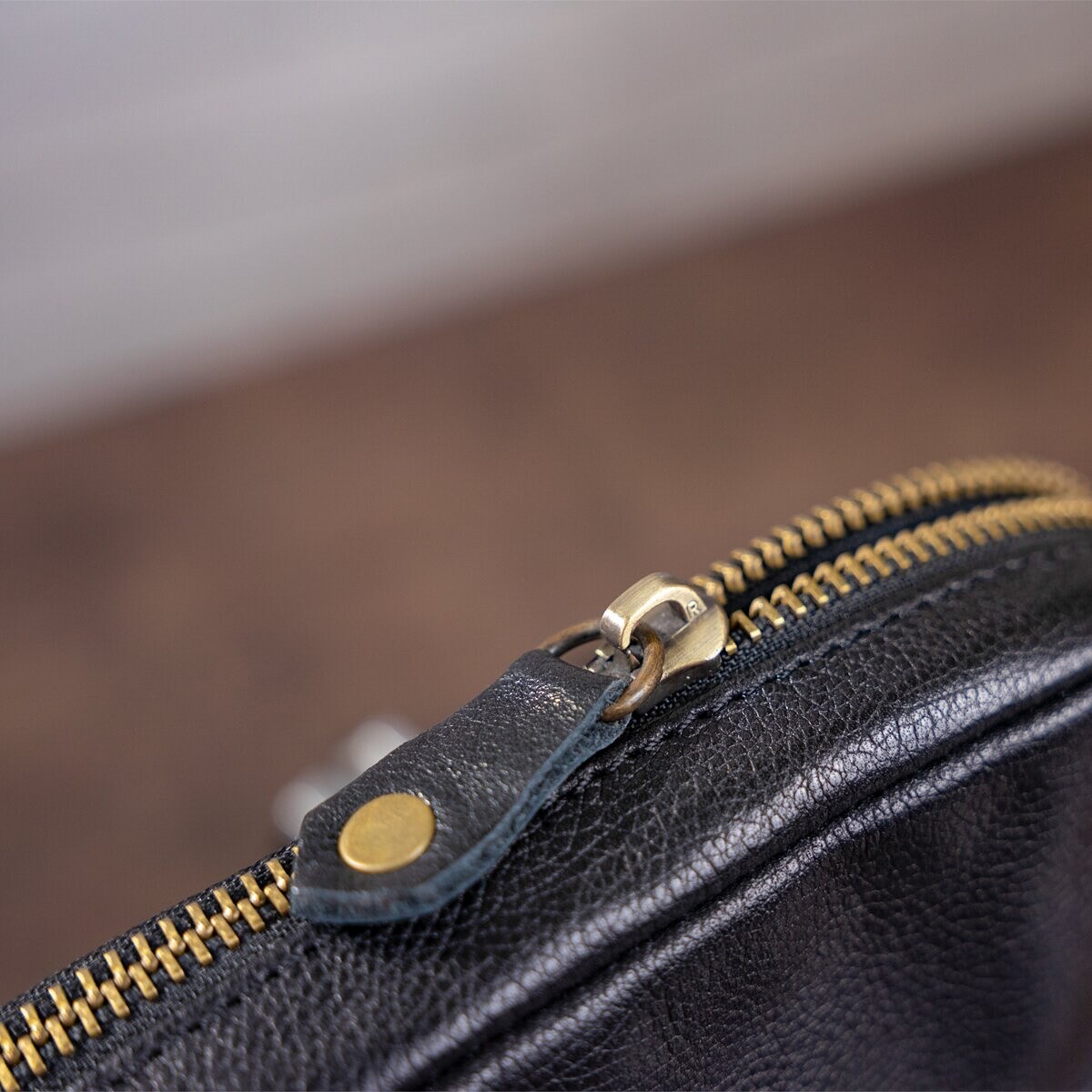 Виріб виконаний з натуральної шкіри чорного кольору. Усередині передбачені кишеня для мобільного телефона та потайна кишеня на блискавці. На лицьовій стороні розташована накладна кишеня на блискавці, а на тильній стороні — додаткова кишеня на блискавці.