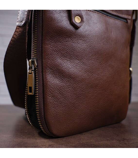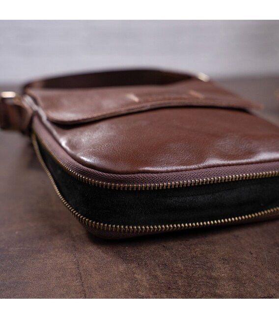 Тонка чоловіча шкіряна сумка планшетка. Виріб закривається на клапан з двома магнітами і блискавку. Сумка має ідеальний розмір на кожен день. Її класичний дизайн підійде вам як до ділового, так і до повсякденного стилю. Всі ваші речі будуть в безпеці, так як сумка має дві застібки клапан і блискавку. Модель доповнена міцною фурнітурою кольору латуні. Також особливістю моделі є те, що ви можете самостійно відрегулювати її наповненість. Просто при необхідності розстібніть бічну блискавку. Ви можете бути впевнені, що це натуральна шкіра. Сумка стане прекрасним подарунком для будь-якого чоловіка.
