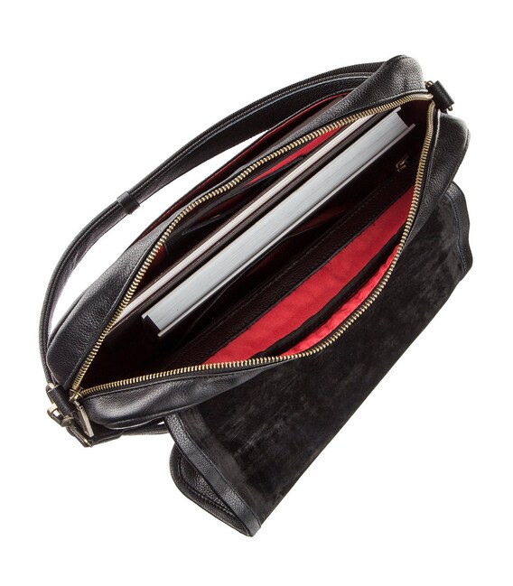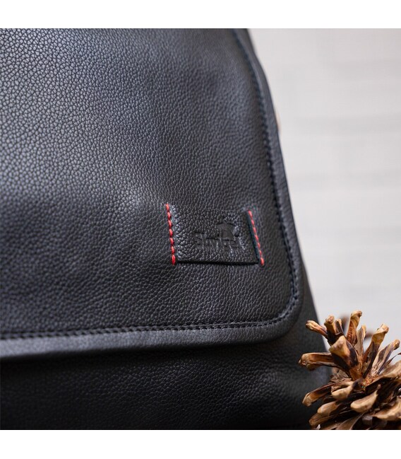 Солідна сумка для роботи або навчання через плече. Аксесуар виконаний з натуральної шкіри типу флотар, яка популярна своєю зносостійкістю і невибагливістю у догляді. На такій шкірі не видно подряпин і потертостей і вона є досить практичною. В аксесуар ви зможете помістити планшет або невеликий ноутбук. При бажанні ручку ви можете зняти. Сумка також доповнена якісною фурнітурою з міцного металу. Ручка на плече текстильна зі шкіряною вставкою, що підкреслює високу якість виробу. На лицьовій стороні аксесуара тиснений логотип бренду з рівною червоною стрічкою.