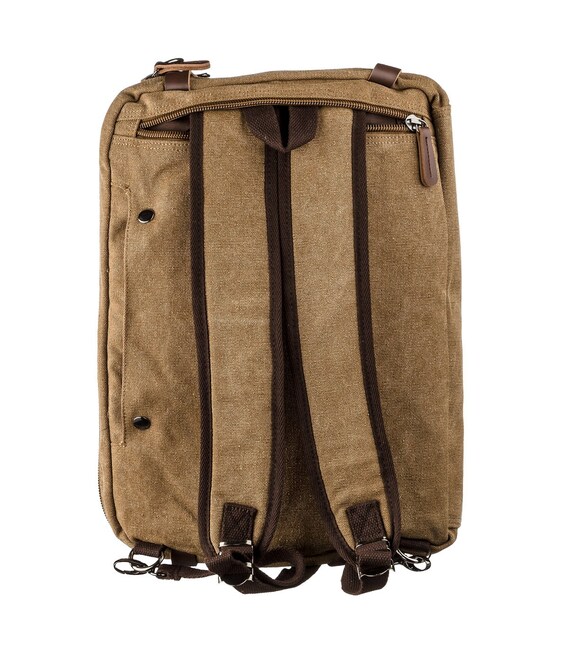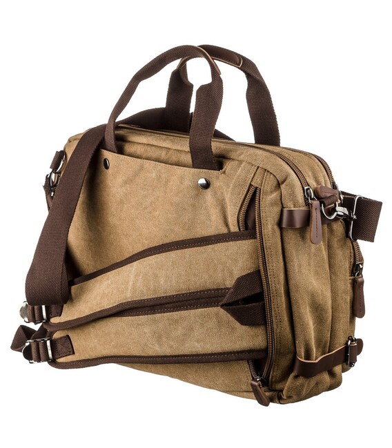 Текстильна сумка трансформер для ноутбука роботи поїздок та міста Vintage 20146 Пісочна