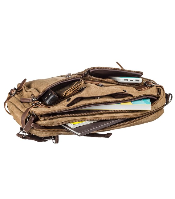 Детальніше Текстильна сумка трансформер для ноутбука роботи поїздок та міста Vintage 20146 Пісочна
