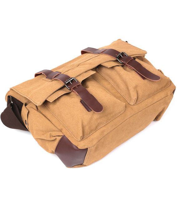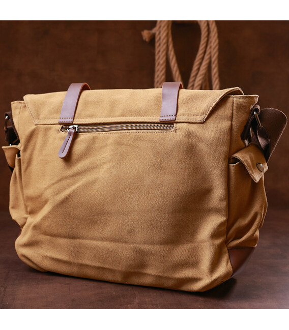 Текстильна сумка для ноутбука середнього розміру. Модель зручно носиться на плечі. Сумка досить легка. Поклавши в неї ноутбук - вам не буде важко. Модель застібається на клапан з магнітними кнопками і лямки. Сумка не вимагає до себе складного догляду і легко стирається. Модель доповнена кишенями на лицьовій стороні і з боків сумки, що допоможе вам легко розмістити всі ваші особисті речі. У нашому магазині ви знайдете цю модель в декількох кольорах. Чорному, синьому, коричневому і пісочному кольорі.
