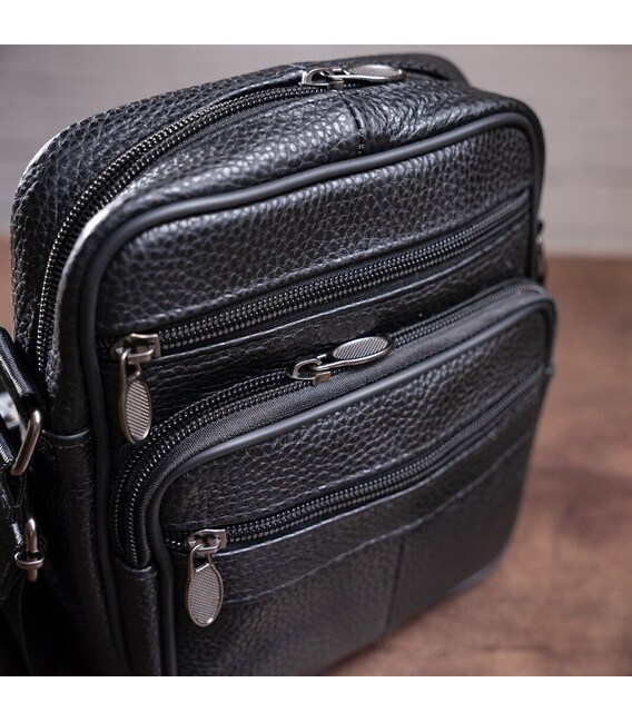 Стильна чоловіча сумка компактного розміру з натуральної шкіри. Модель ідеально підійде на кожен день. В сумку з легкістю помістяться всі найнеобхідніші речі. З такою сумкою буде зручно ходити на роботу або зустрічі. Доповнено виріб якісною фурнітурою. Сумка стане прекрасним подарунком для близької людини.