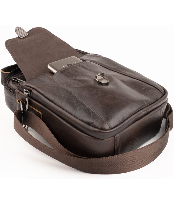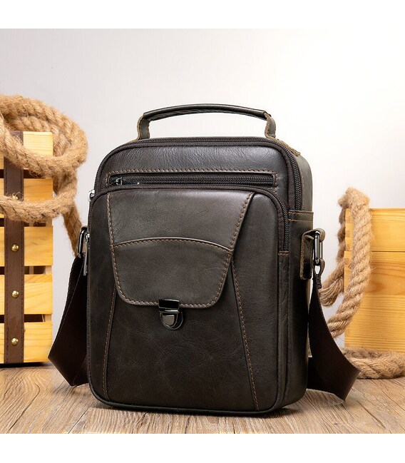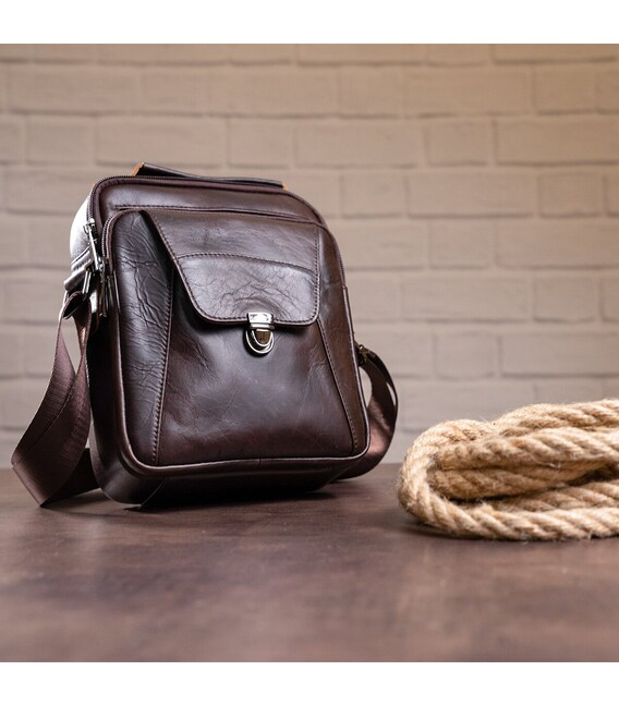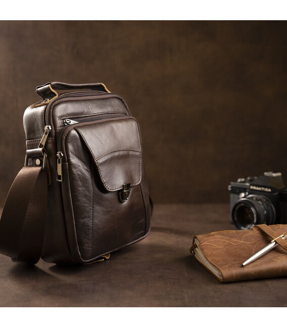 Якісна чоловіча сумка з натуральної шкіри компактного розміру. Виріб ідеально підійде на кожен день. У модель легко помістяться всі необхідні речі. Сумка підкреслить ваше відмінне почуття стилю. Виріб буде ідеальним подарунком для будь-якого чоловіка.