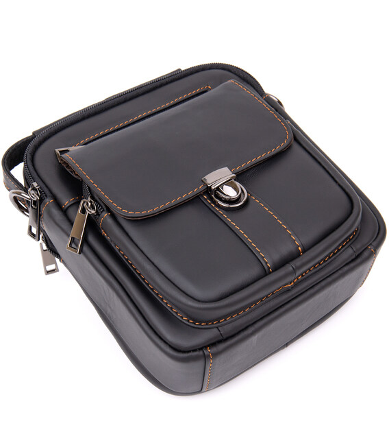 Компактний месенджер на два відділення чоловічий Vintage 20395 Чорний