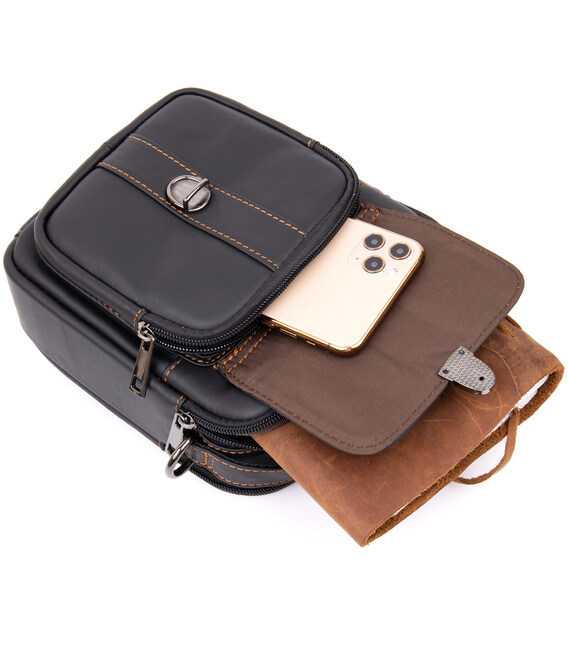 Компактна сумка в щільній шкірі гладкого типу. Виріб має в дизайні рудий рядок. Виріб має дуже практичний функціонал незважаючи на свій компактний розмір. В сумку можна помістити ваші особисті речі (мобільний, гаманець, документи, кредитницю, повербанк, ключі та багато іншого). Виріб доповнено якісною фурнітурою. Виробництво - фабричний Китай високої якості. У комплекті до сумки - пилозахисний чохол. Сумка - ідеальний варіант як для себе так і на подарунок.