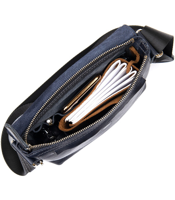 Стильний темно-синій чоловічий месенджер з висококласної натуральної шкіри, якість якої, можна оцінити навіть неозброєним поглядом. Всередині присутня одне основне містке відділення, яке закривається на блискавку і накривається клапаном на магніті. Також Вас порадують дві зовнішні кишені на блискавках для швидкого доступу до дрібниць. Упакований месенджер в фірмову сумку-чохол.