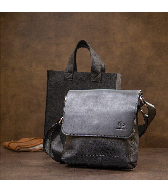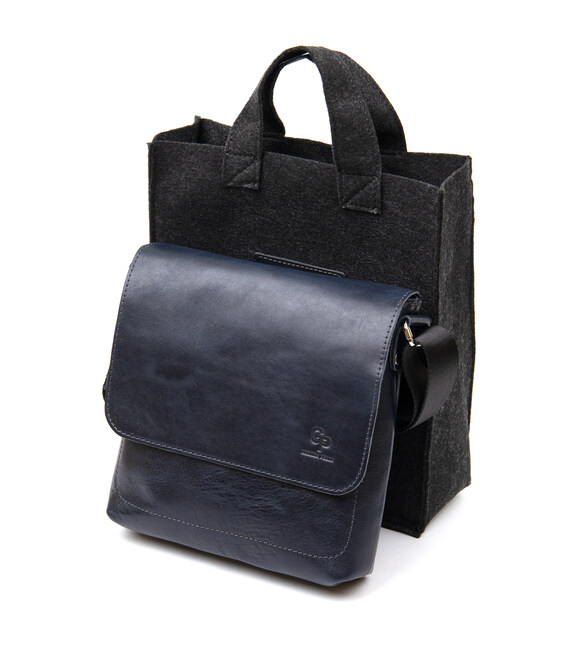 Детальніше Практична шкіряна чоловіча сумка-месенджер GRANDE PELLE 11433 Темно-синій