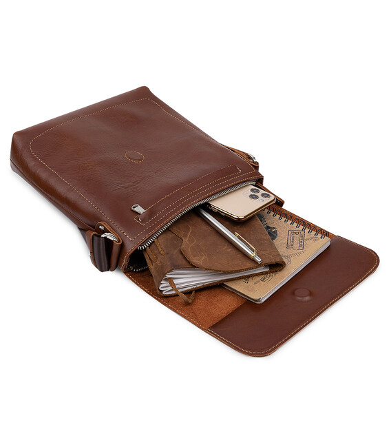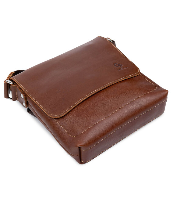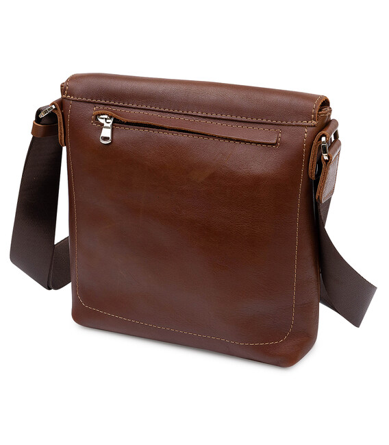 Добротна чоловіча сумка з натуральної шкіри. Має гладку глянсову фактуру і красивий коричневий колір. Всередині є містке відділення на блискавці і кишеня для телефону. На задній і передній зовнішніх сторонах є кишені на блискавці. Упакована сумка в фірмовий чохол.