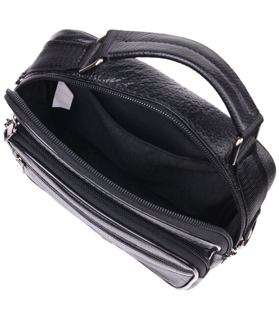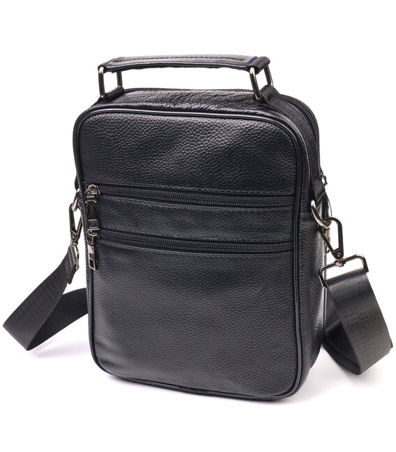 Містка чоловіча сумка середнього розміру з натуральної шкіри. Модель ідеально підійде на щодня. У сумку з легкістю помістяться всі необхідні речі. З такою сумкою зручно ходити на роботу або зустрічі. Доповнено виріб якісною фурнітурою, темно-срібного кольору. Сумка стане чудовим подарунком для близької людини.
