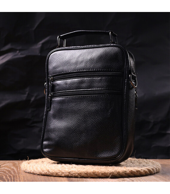 Містка чоловіча сумка шкіряна 21271 Vintage Чорна