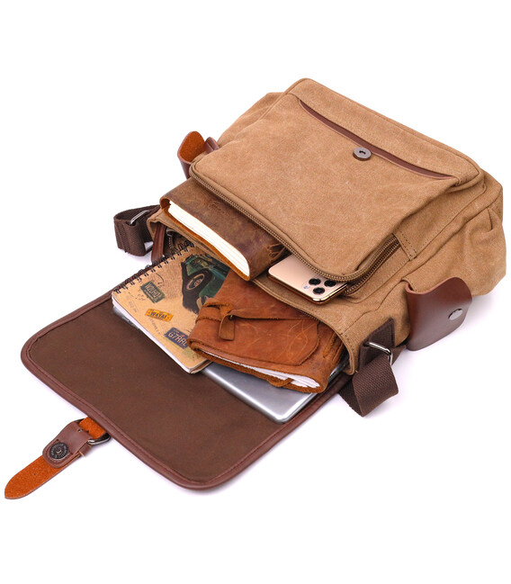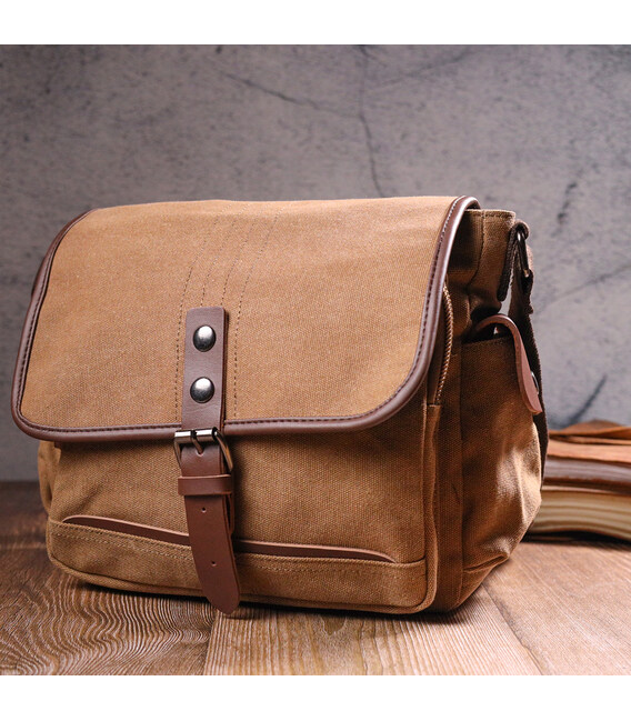 Функціональна чоловіча сумка з клапаном із текстилю 21249 Vintage Коричнева