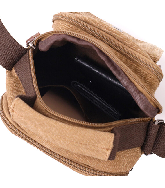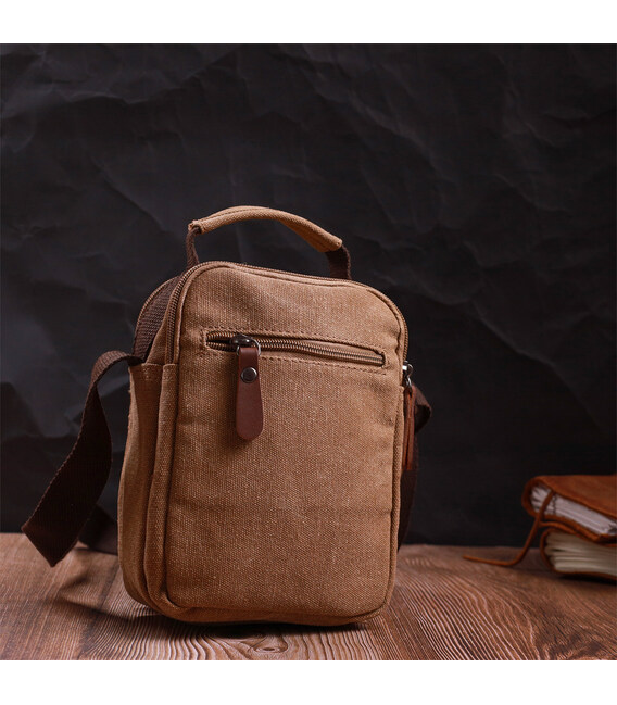 Детальніше Практична невелика чоловіча сумка із щільного текстилю Vintage 22220 Коричневий