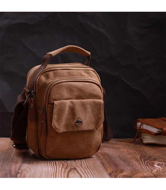 Практична невелика чоловіча сумка із щільного текстилю Vintage 22220 Коричневий
