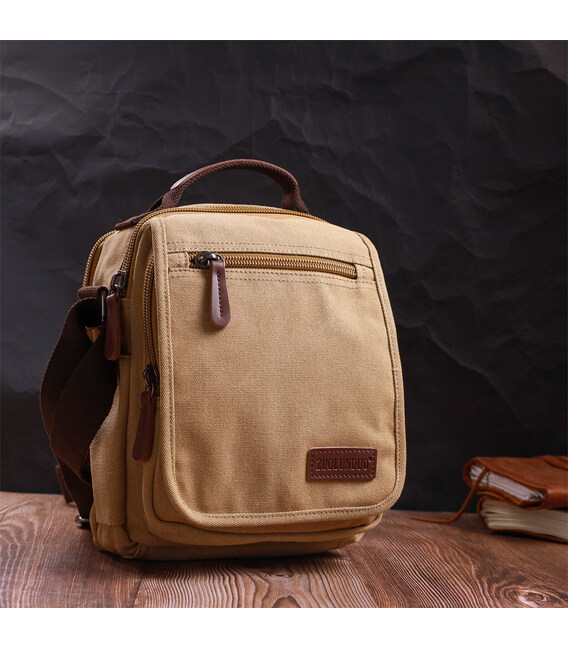 Чоловіча сумка листоноша на плече із щільного текстилю Vintage 22229 Пісочний