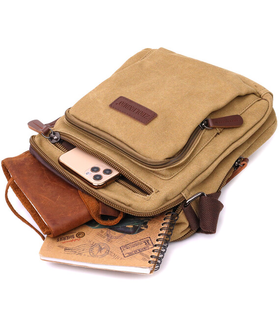 Детальніше Вертикальна сумка для чоловіків із текстилю Vintage 22239 Пісочний