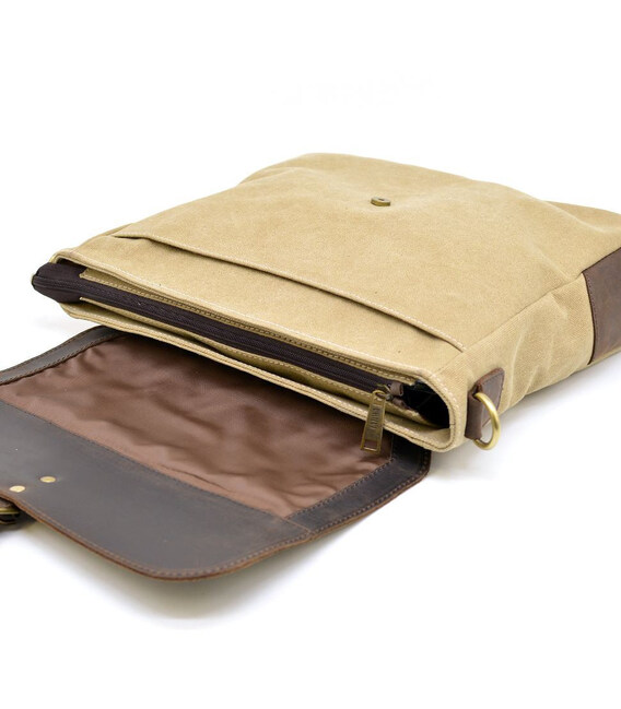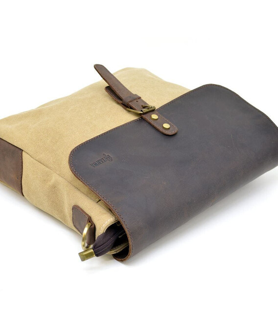 Сумка чоловіча через плече парусина + шкіра теляча RCs-6600-4lx TARWA. Зручний варіант для роботи, навчання або поїздок. Вміщує формат А4.