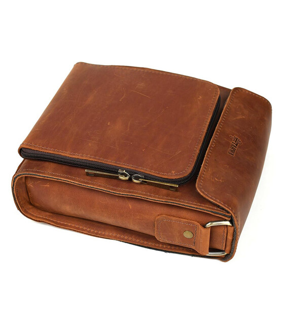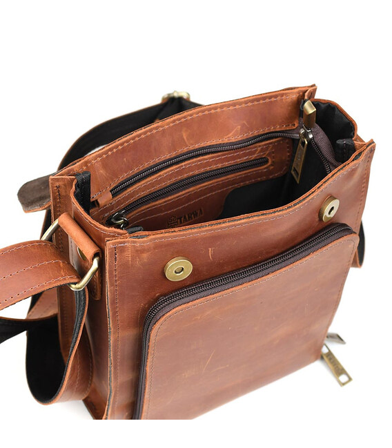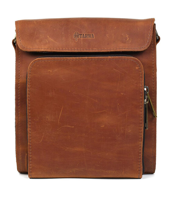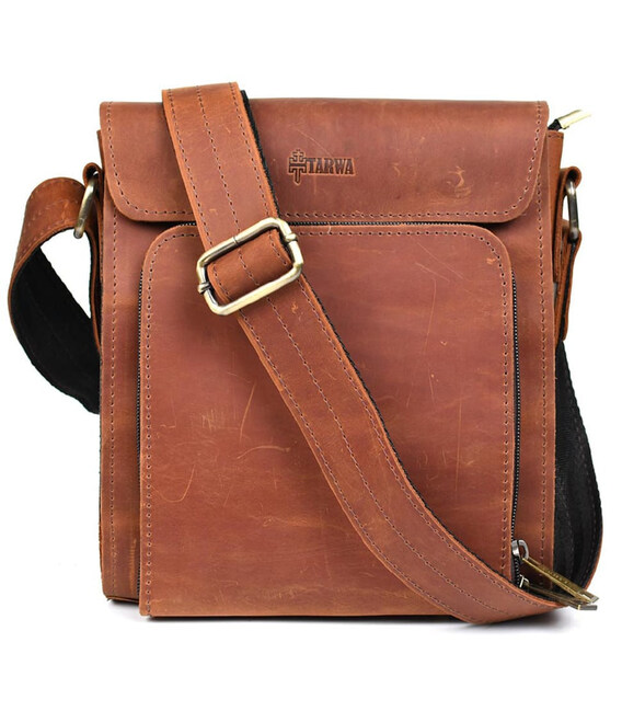 Чоловіча шкіряна сумка через плече RB-30272-3md TARWA, з натуральної шкіри шкіряної коньячного кольору, вироблення crazy horse.