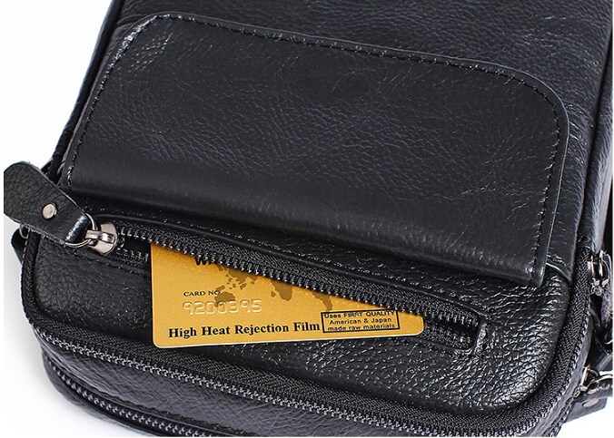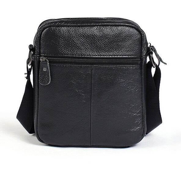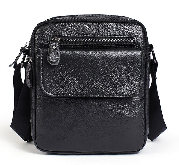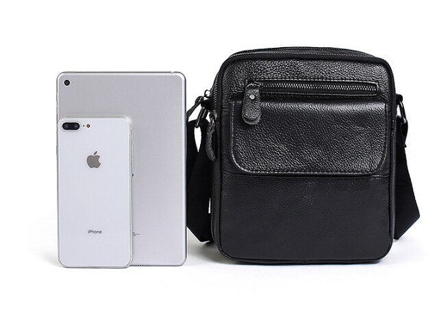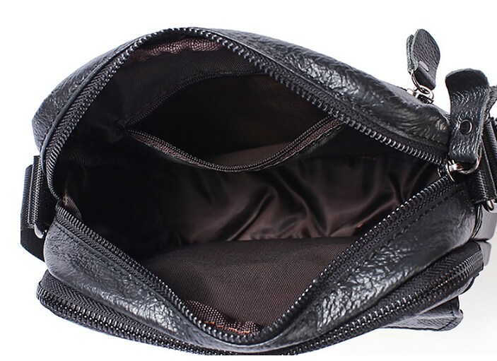 Відмінна шкіряна чоловіча сумка чорного кольору. Аксесуар носиться через плече. Підкладка виконана з надійного текстилю.
