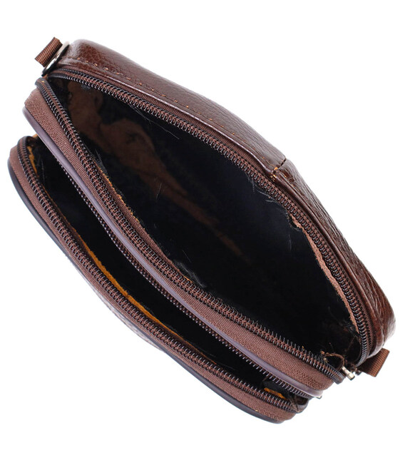 Чоловіча горизонтальна поясна сумка з натуральної шкіри 21486 Vintage Коричнева