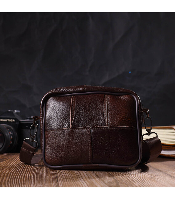 Детальніше Чоловіча горизонтальна поясна сумка з натуральної шкіри 21486 Vintage Коричнева
