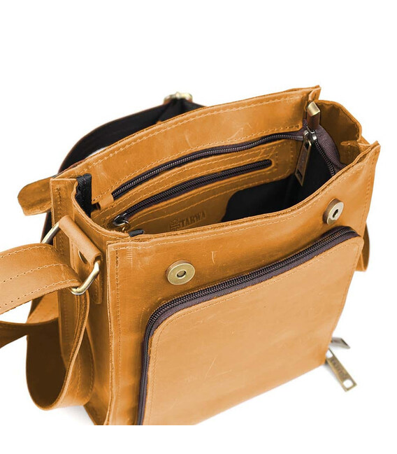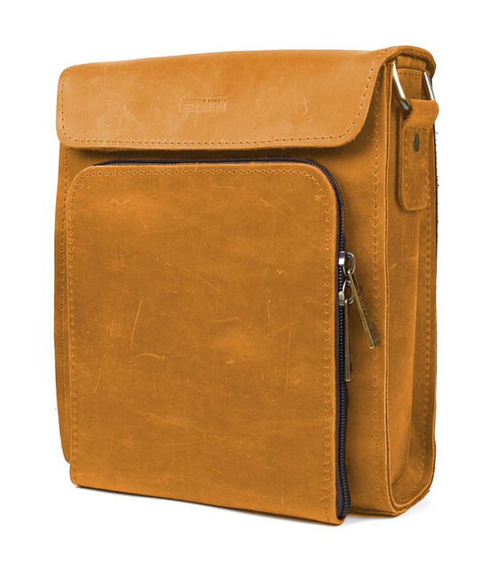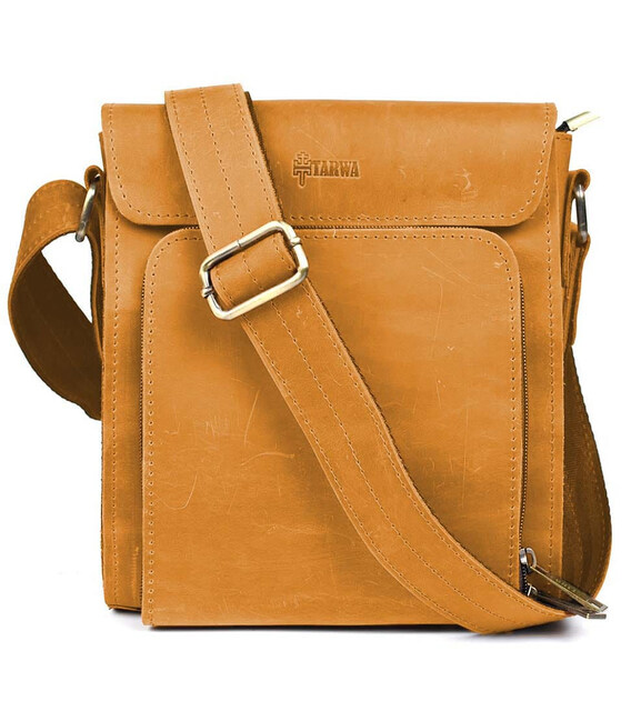 Чоловіча шкіряна сумка через плече RCam-30272-3md TARWA крейзі пісочний хорс, з натуральної матової шкіри вичинки crazy horse.