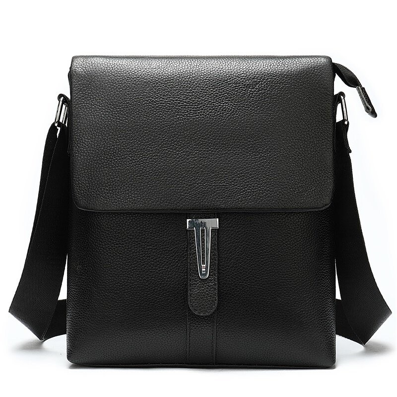 Тонкий чоловічий месенджер з натуральної шкіри класичного чорного кольору. Модель виготовлена в зернистій шкірі, яка відрізняється своєю стійкістю до подряпин і потертостей. На лицьовій стороні металевий логотип у вигляді букви V. Всередині - коричнева текстильна підкладка. Доповнено виріб фурнітурою сріблястого кольору з міцного металу. У сумці дуже зручно буде носити планшет. З нею буде також дуже зручно ходити на роботу або зустрічі. Якщо ви шукаєте невелику і якісну сумку на кожен день рекомендуємо придивитися до даної моделі. Впевнені, що проносите ви її досить довго.