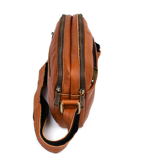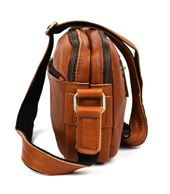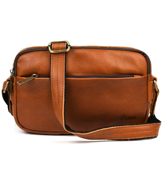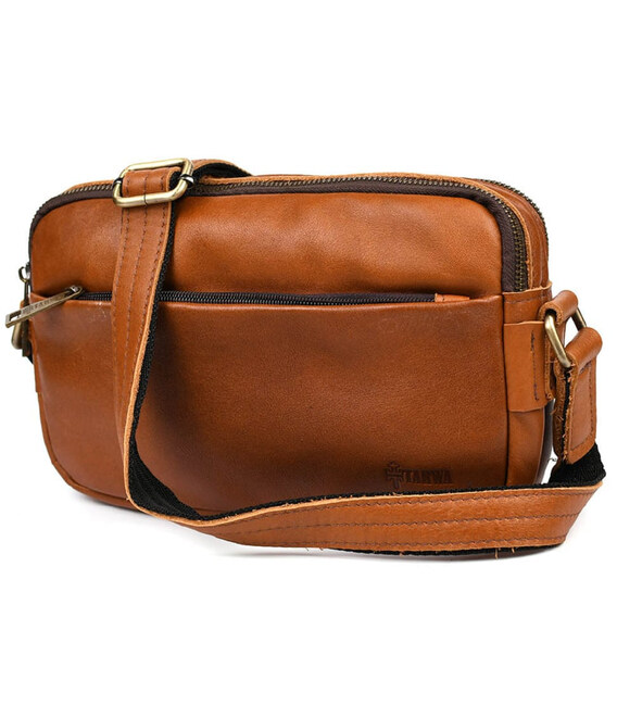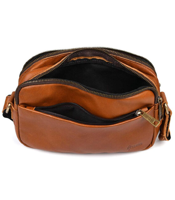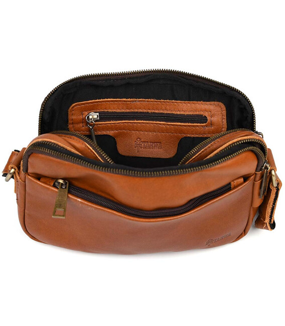 Сумка через плече шкіряна на два відділення GB-0745-3md TARWA коньячна Наппа. Стильний месенджер на кожен день, у поїздці та на прогулянці.