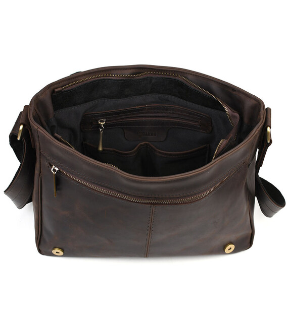 Велика чоловіча сумка-листоноша з натуральної шкіри RС-7338-3md бренду TARWA. Для повсякденного носіння ідеально підходить для папок А4. Завдяки своїм розмірам може використовуватись як дорожній варіант для відряджень.