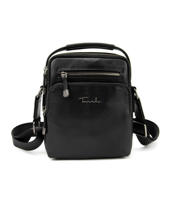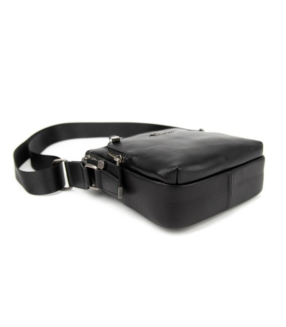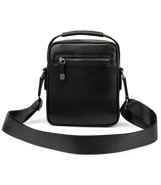Шкіряна чорна сумка в зернистій шкірі. Має надійну якісну фурнітуру, шкіряні пуллера. Для носіння можна використовувати шкіряну ручку і текстильний плечовий ремінь, який регулюється по довжині. Сумка має одне основне відділення. З лицьового боку є накладна кишеня на блискавці і ще одна додаткова кишеня на блискавці горизонтального типу. З тильного боку також є кишеня на блискавці. Усередині сумки розташована маленька кишеня для дрібниць. Знайшли цю модель дешевше? Зв'яжіться з нами і ми запропонуємо Вам найнижчу ціну в Україні, бо ми є виробником даного товару.