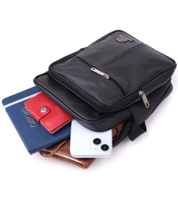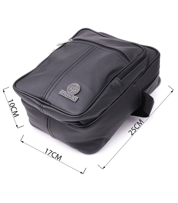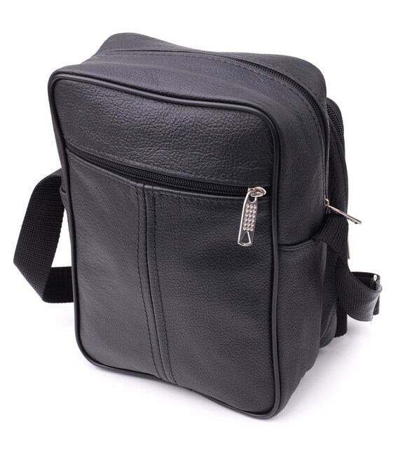 Зручна чоловіча сумка із натуральної шкіри. Аксесуар зовсім не вибагливий у догляді та користується особливою популярністю у чоловіків. Усередині сумки щільна текстильна підкладка. По краях аксесуар прошитий рівним рядком. У правому нижньому куті є металевий логотип виробника. Сумка стане чудовим подарунком для будь-якого чоловіка.