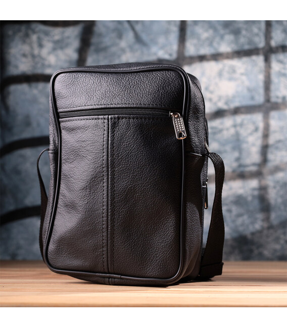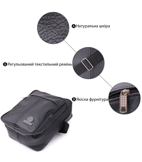 Детальніше Містка чоловіча вертикальна сумка з натуральної шкіри Vintage sale_15111 Чорний