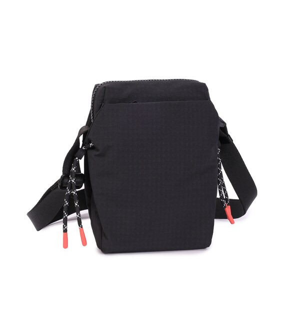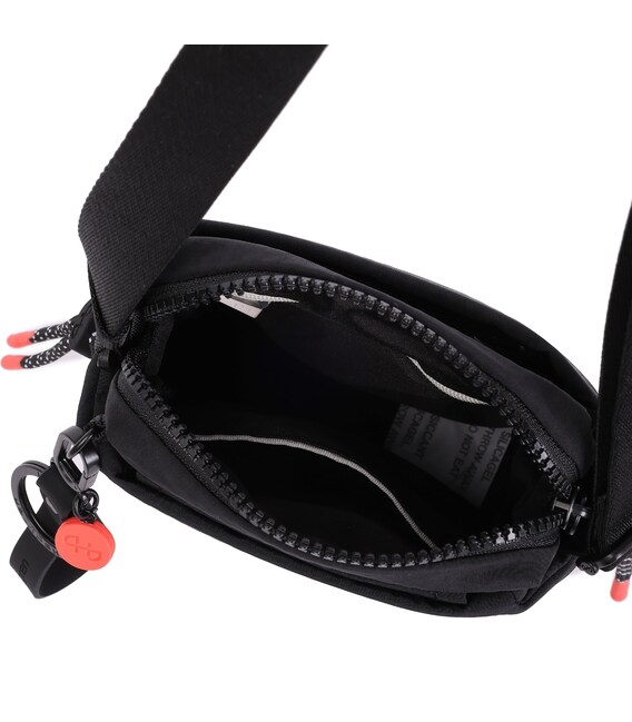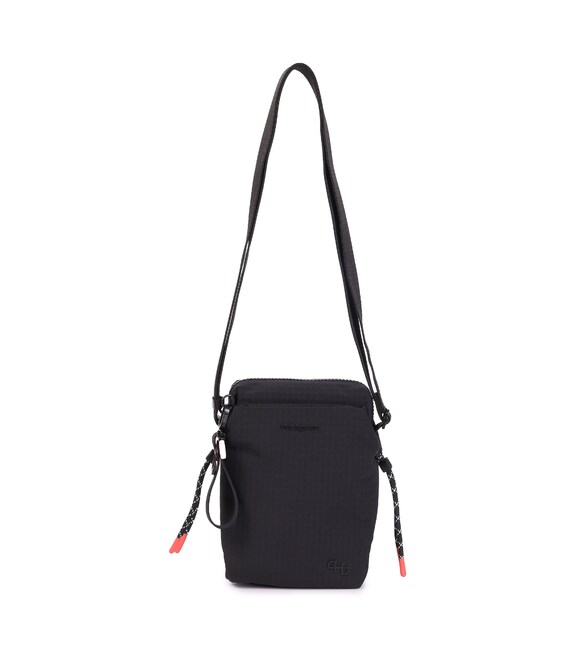 Зручна, компактна вертикальна сумка з розширенням, виготовлена з переробленої тканини. Оснащена основним відділенням на блискавці для сматфону, та дрібних речей першої необхідності. Зовні оснащена кишенями з обох боків, для невеликої парасольки та пляшки. Передбачено втоплену блискавку, на зовнішніх кишенях, яка щільно прилягає до тіла, як додатковий засіб безпеки. Також, за потребою сумка розширюється. Сумку можна носити через плече завдяки регульованому ременю.