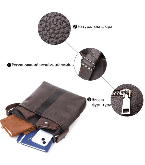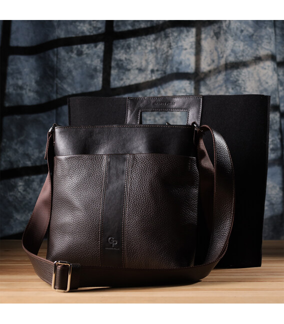 Стильна сумка через плече для чоловіків із натуральної шкіри GRANDE PELLE 22884 Коричневий