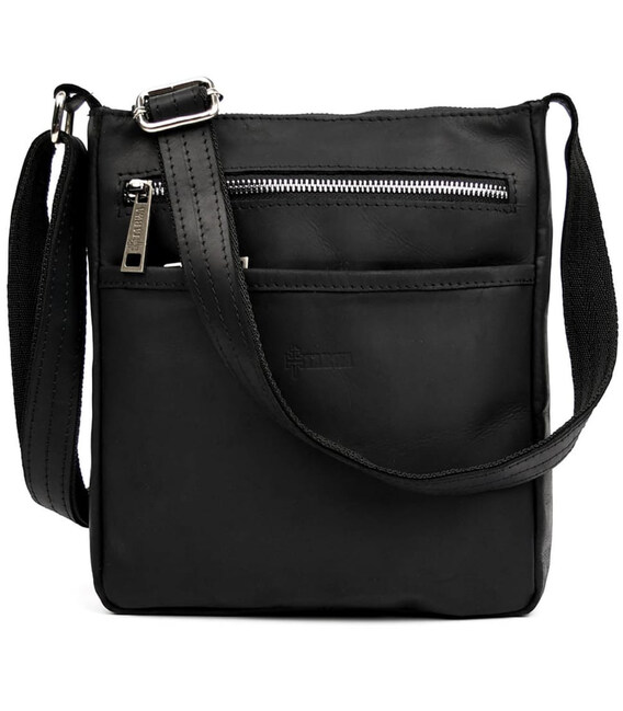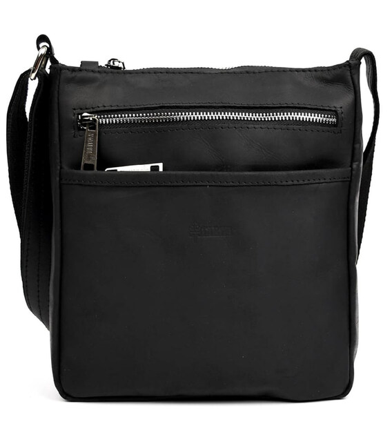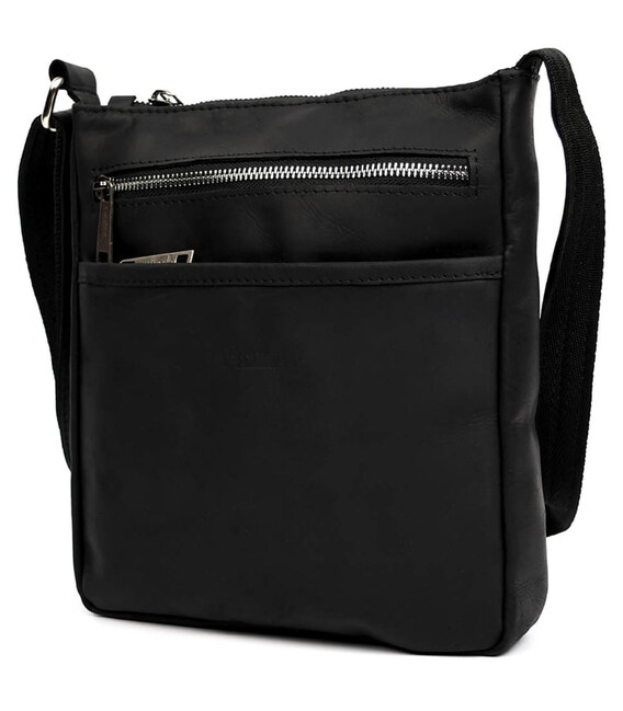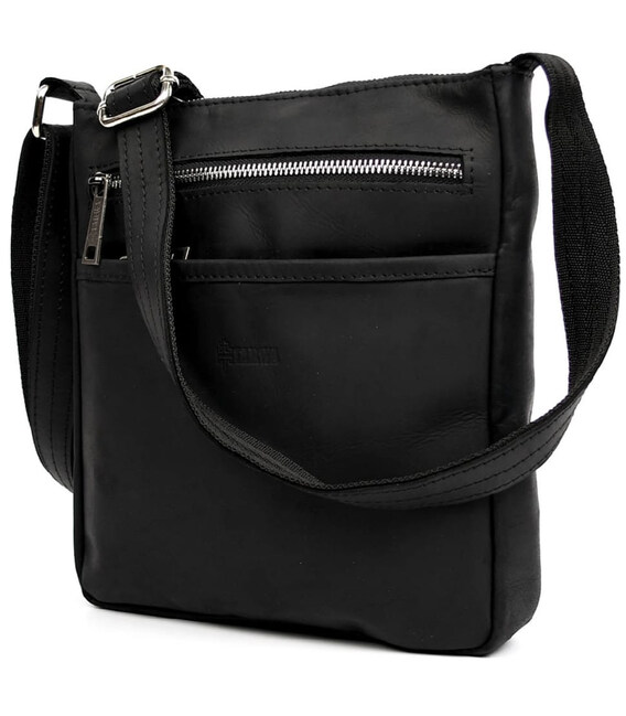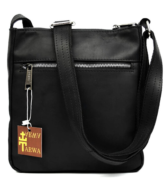 Чоловіча шкіряна сумка через плече RA-1300-4lx TARWA, із натуральної кінської чорної шкіри із матовою фактурою та фурнітурою кольору срібло.