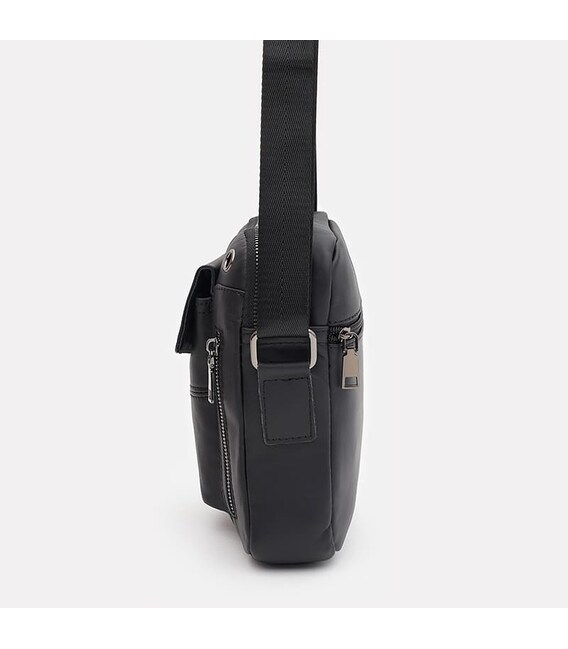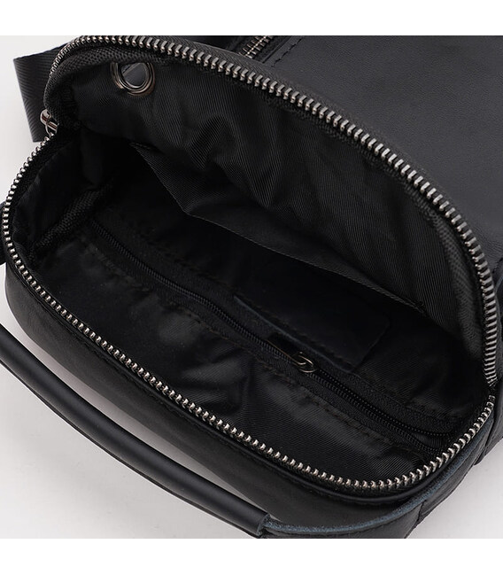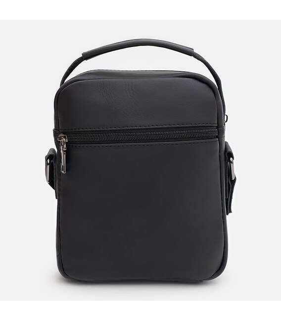 Чоловіча шкіряна сумка закривається на блискавку. Має 1 основне відділення, всередині 2 кишені для телефону та дрібниць. З лицьового боку -1 кишеня на блискавці та 1 кишеня-клапан/кнопка. З тильного боку -1 кишеня на блискавці. Підкладка – текстиль. Плечовий ремінь регулюється по довжині.